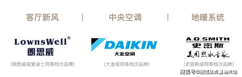 质造高端三大件精装:装修品牌皆选用一线大牌配置,户内搭配中央空调、地暖、新风系统提升居住舒适度: